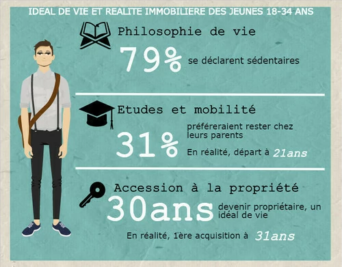Selon un sondage réalisé par BVA pour le groupe Foncia dans le cadre d’une « trilogie » sur « le cycle de vie immobilière des Français », 31% des 18-24 ans et 42% des 25-34 ans sont propriétaires ou copropriétaires de leur logement.