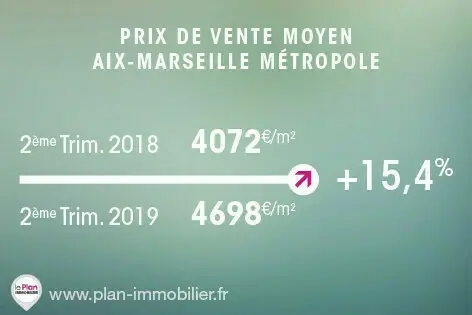 Le prix moyen au mètre carré en région PACA Provence se situe à 4 585 € au 2e trimestre 2019. Une performance imputable à la hausse des prix des logements de 3 et 4 pièces selon la FPI. Au sein de la Métropole d’Aix-Marseille le prix moyen du mètre carré grimpe à 4 698€/m2, soit une impressionnante hausse de 15,5% entre le 2e trimestre 2018 et le 2e trimestre 2019.