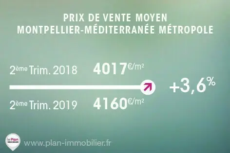 Le prix moyen du mètre carré a augmenté de 3,5% entre le 2e trimestre 2018 et le 2e trimestre 2019 dans l’ancienne région Languedoc-Roussillon. Il s’établit alors à 3 757 €/m2. La hausse est légèrement plus importante pour Montpellier-Méditerranée (+3,6%) et pour Nîmes (+3,7%) alors qu’on observe une baisse de 3,5% à Perpignan.