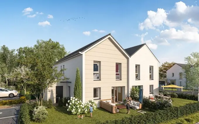 A 15min** de Rennes, votre maison ou villa-jardin à 856,85€/mois* à BREAL-SOUS-MONTFORT ! r/>r/>Dans un domaine arboré et paysager, European Homes est fier de vous présenter son nouveau lieu de vie "Les Jardins du Rocher" à Bréal-sous-Montfort. Nichée à seulement 15 km** des portes de Rennes, cette adresse intimiste allie sérénité et dynamisme. Que vous soyez une famille à la recherche d’un environnement sécurisé et stimulant pour vos enfants, un couple en quête d’un cadre de vie paisible proche des commodités, ou un investisseur souhaitant une adresse attractive, notre résidence répond à toutes vos attentes. Ce projet offre une opportunité unique de vivre dans un cadre privilégié, alliant confort, modernité et nature. Situé rue de la Maladrie, "Les Jardins du Rocher" se compose de 18 maisons de 4 et 5 pièces, d’une superficie de 81,7 m2 ou 98 ,8 m2, prolongées par des jardins privatifs engazonnés et clôturés. Chaque maison dispose d'une place de parking en garage et de deux places de stationnement extérieures, dont une réservée aux personnes à mobilité réduite. En exclusivité, le programme propose également 24 Villas-Jardins en duplex de 3 pièces, chacune dispose d’une entrée individuelle, d’un jardin privatif engazonné et clôturé et d’une place de stationnement extérieure. Depuis 50 ans, European Homes réinvente l’habitat avec son concept unique des VILLAS-JARDINS rendant possible le rêve d’une maison, à partir de 60 m2, agrémentée de son jardin privatif engazonné. Ainsi grâce à la recherche constante de la maîtrise de coûts, European Homes ouvre la propriété et la qualité de vie au plus grand nombre au prix juste. "Les Jardins du Rocher" bénéficie d'un emplacement stratégique. r/>Les portes de Rennes sont accessibles en 15 minutes** en voiture via la N24 ou en 18 minutes** en bus 1a ou 1b. La gare de Rennes se trouve à 37 minutes** en bus ou à 30 minutes** en voiture, tandis que l'aéroport de Rennes est à seulement 14 minutes** en voiture. Le quartier offre un large éventail d’infrastructure pour faciliter le quotidien de chacun. r/>Pour les familles, les établissements scolaires sont facilement accessibles : les écoles maternelle et primaire Pierre Leroux sont à 10 minutes** à pied, le collège Françoise Elie à 16 minutes** à pied et le lycée Anita Conti est accessible en 31 minutes** en bus. Pour vos besoins quotidiens, une boulangerie se situe à 3 minutes* à vélo, le marché hebdomadaire est à 5 minutes** à vélo et un Carrefour Market se trouve à 5 minutes** en voiture. La proximité de la maison médicale et de la pharmacie, à 6 minutes** à vélo, assurent un accès rapide et pratique aux soins de santé. r/>Ceux en quête d’activités pourront se laisser séduire par les équipements sportifs et de loisirs dans un périmètre de 15 minutes** à pied : complexe sportif Colette Besson, cinéma La Bobine, centre culturel Brocéliande et médiathèque à moins de 15 minutes** à pied. r/>Ne manquez pas l'opportunité de vivre dans un cadre exceptionnel où le confort et la nature se rejoignent harmonieusement. (Ref.