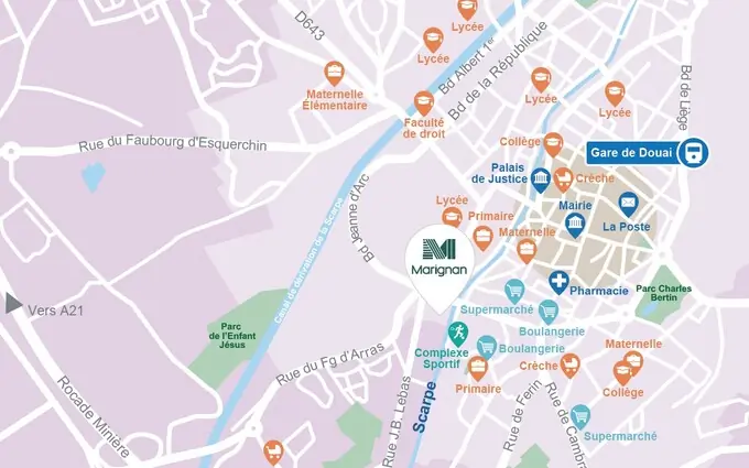 Les 30 jours Flash ! Faites la meilleure affaire de fin d’année à DOUAI et emménagez immédiatement ! Jusqu’à 15 000 euros de remise et frais de notaire offerts. Venez visiter notre appartement décoré et vous projeter dans votre futur appartement neuf ! Et en plus avec la TVA réduite à 5,5%, devenez propriétaire pour le même prix que votre loyer ! Découvrez notre nouvelle résidence à Douai, entourée de jolies maisons dans un environnement verdoyant. Profitez de la TVA réduite pour vous installer dans un logement neuf à Douai. Construite au calme et en retrait de la rue, elle s'élève sur 2 étages surmontés d'un attique. Située non loin des rives de la Scarpe, à laquelle elle est reliée par un cheminement piétonnier privatif, elle comprend des appartements du 2 au 4 pièces, s'ouvrant tous sur un espace extérieur. Parkings en sous-sol et locaux vélos.
