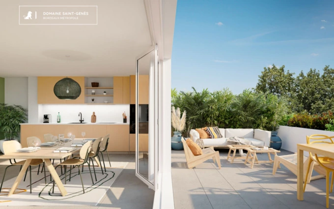 La résidence est composée de 10 logements et d’une crèche. Chacun des biens est doté d’un extérieur grâce à des terrasses végétalisées ou des loggias privatives. Pour le plus grand confort de ses résidents, le domaine SaintGenès met à la disposition des appartements des places de parking privatives et électrifiables et un local à vélos. Composé de logements allant du T2 au T4 en duplex, le domaine Saint-Genès dispose de belles surfaces optimisées. Les surfaces sont comprises entre 44 et 94 m² et sont réparties de manière harmonieuse au sein de chaque logement. La résidence est entièrement sécurisée grâce au système Intratone et au portail électrique. Entouré de beaux espaces verts, le domaine Saint-Genès est situé dans un quartier plébiscité et proche de toutes les commodités. Le cœur de ville est rapidement accessible à pied, à vélo ou en voiture depuis la résidence. Le centre de Bordeaux est situé à moins de 10 minutes grâce à la ligne B du tramway bordelais.